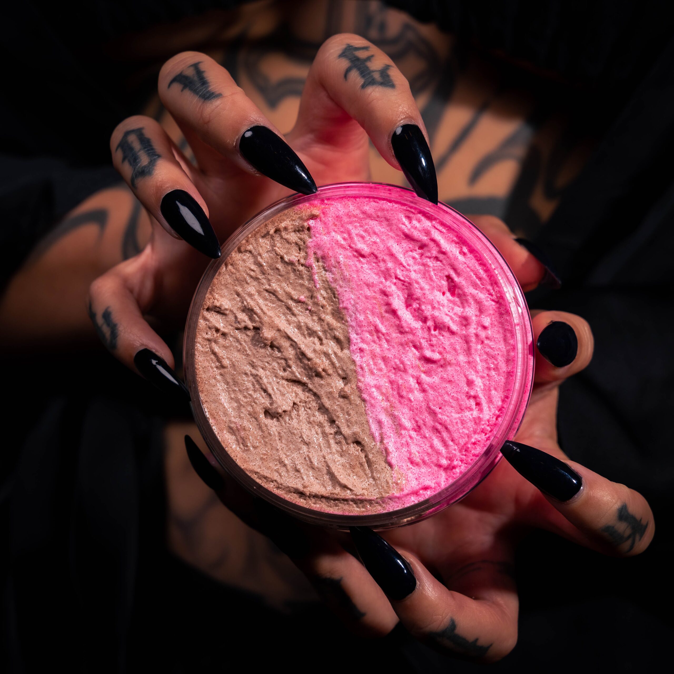 Brown and pink perfection brewed with coffee and donut vibes—scrub like a psycho with great taste.